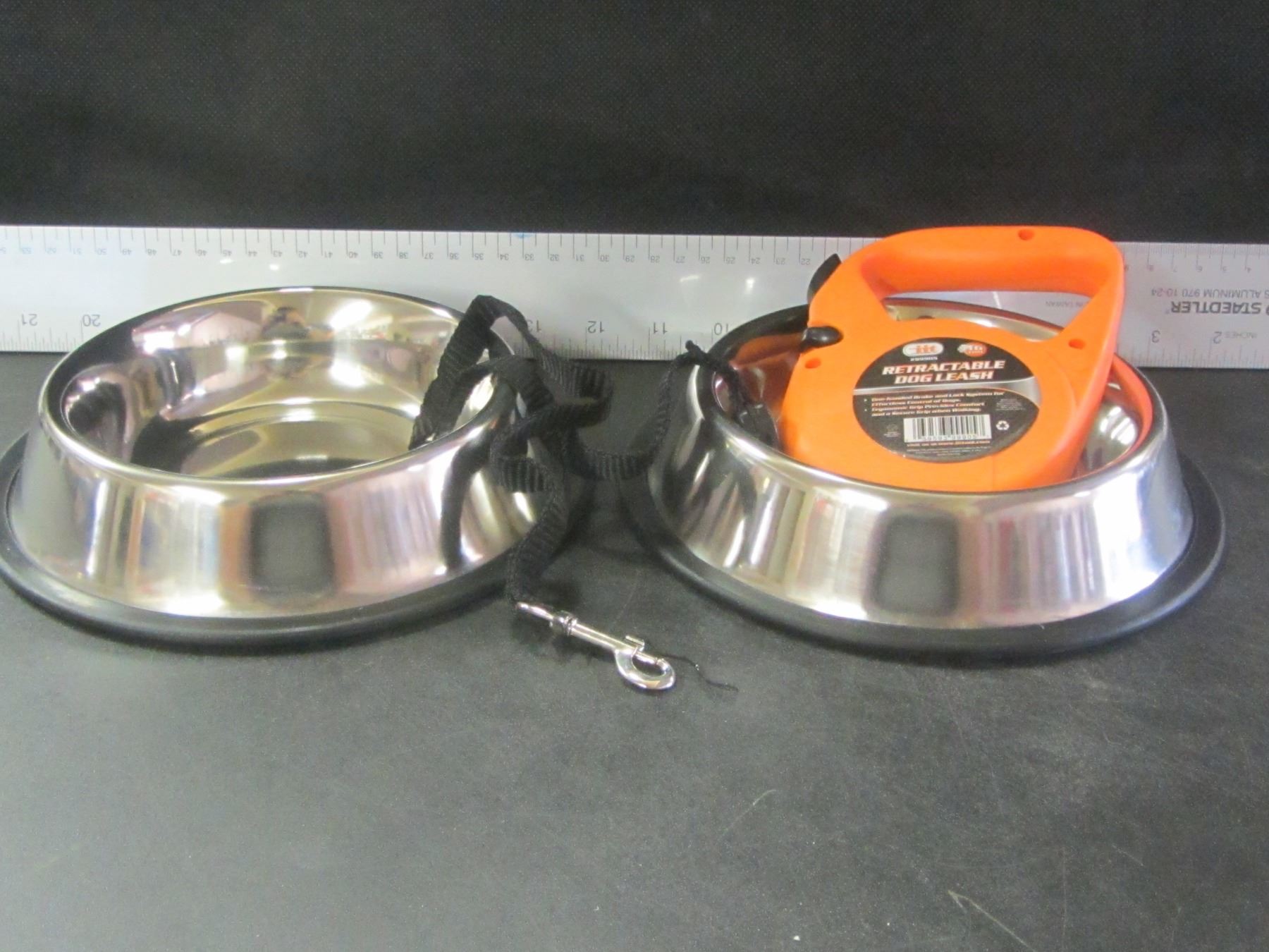 2 stainless steel pet bowls non skid for sm-med pets & retractable leash