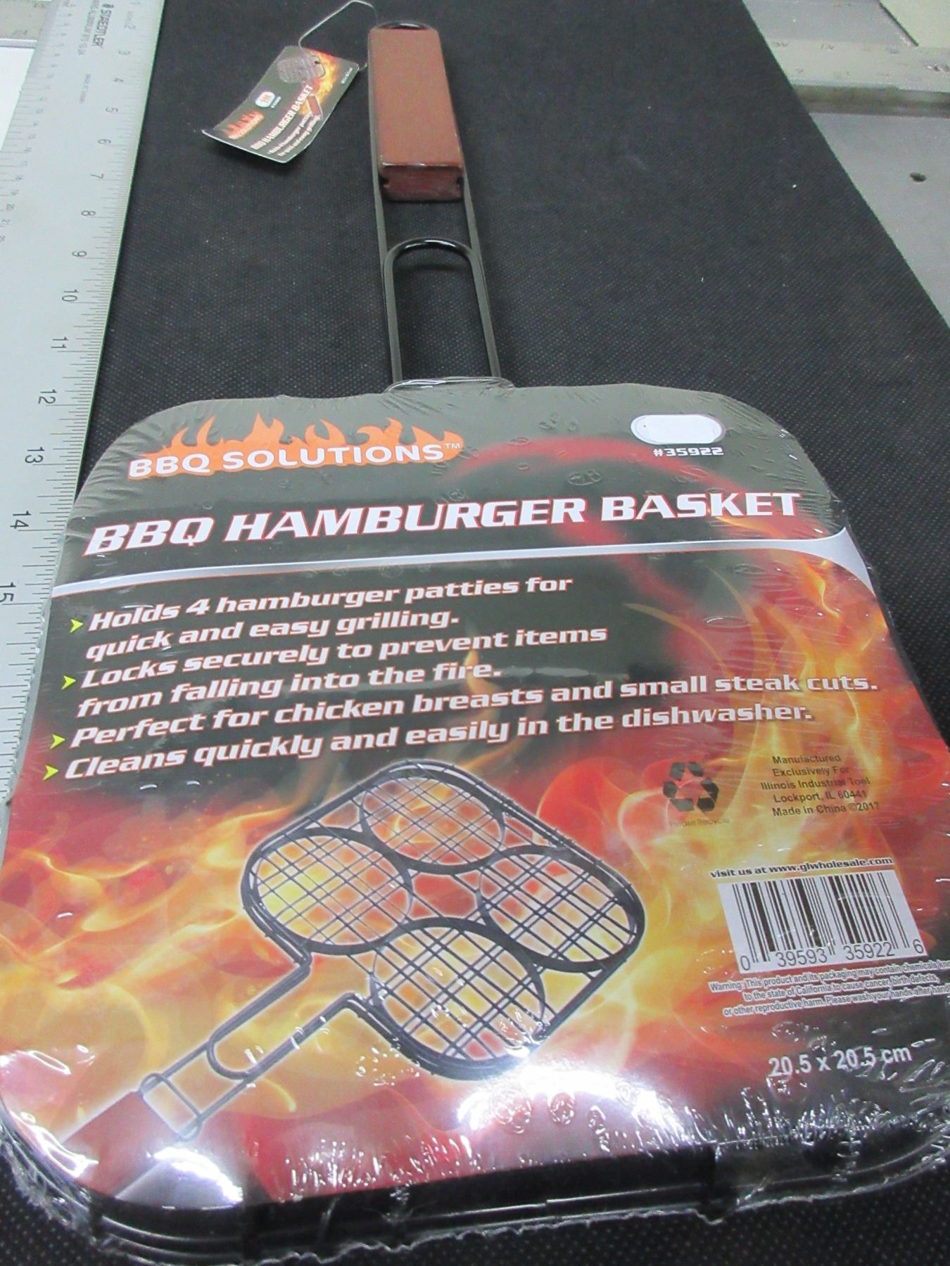 New BBQ / Camping Hamburger Basket / Holds 4 Burgers / locks securely