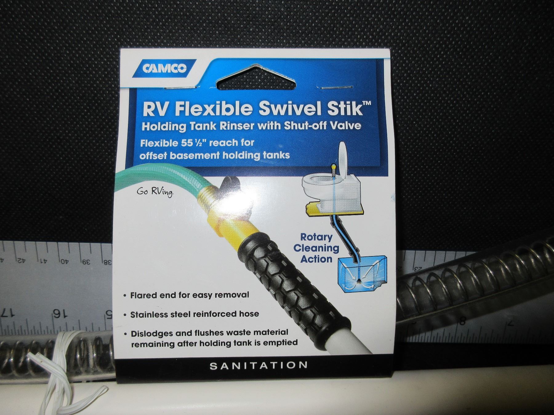 New RV Flexible Swivel Stik for flushing out your RV tanks / has shut off
