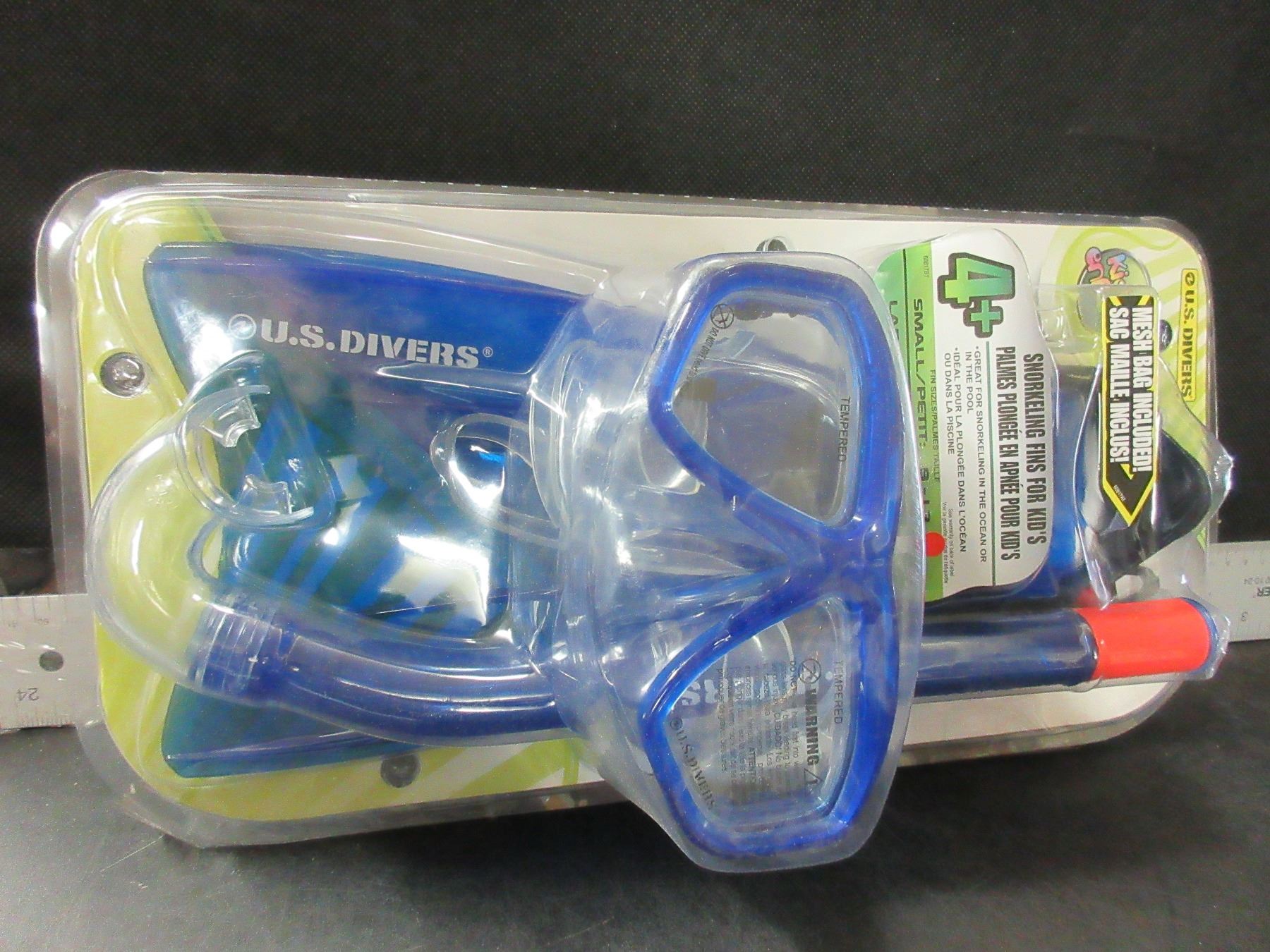 New US Divers Snorkeling Set / Fins - Snorkel - Mask - Bag - ages 9-13