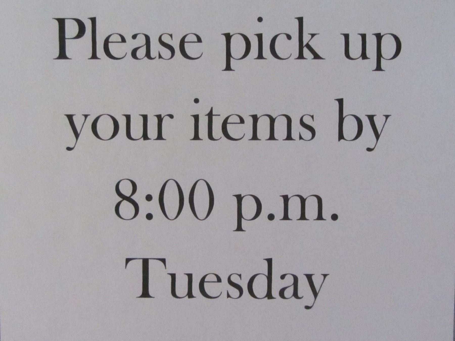 Please Pick Up Items By Tuesday 8pm